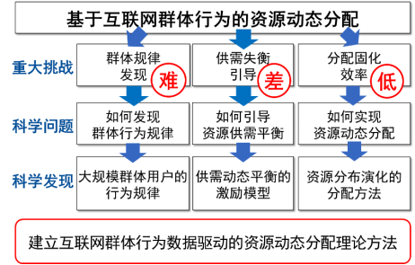 线下服务资源有效地分配给线上大规模用户是提升互联网经济效率的核心计算问题之一,已成为共享交通与智慧物流等互联网经济的共性基础。其本质是一个由有限资源供给与大规模用户需求之间矛盾形成的复杂问题。项目组在973计划与国家自然科学基金等项目的支持下,历经十余年的研究探索,揭示了大规模互联网群体用户的行为规律,发现了引导供需平衡的动态激励机制,建立了基于互联网群体行为的资源动态分配理论方法。代表性论文得到了百余位院士和ACM/IEEE Fellow的正面评价,所建立的资源动态分配方法获国际数据挖掘领域顶级竞赛KDD Cup 2020全球冠军,相关成果被交通技术管理部门和共享交通与智慧物流服务等领域的互联网平台广泛应用,累计用户规模过亿。
