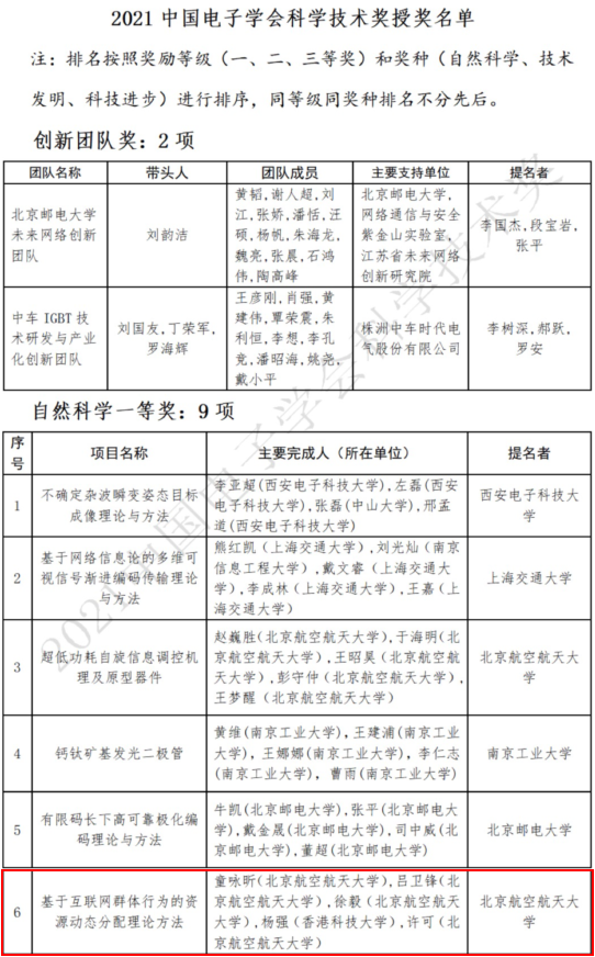 日前,中国电子学会公布了2021年科学技术奖评选结果,ballBET贝博BB艾弗森ballBET贝博BB艾弗森软件开发环境国家重点实验室的研究成果“基于互联网群体行为的资源动态分配理论方法”荣获中国电子学会自然科学奖一等奖,成果主要完成人包括ballBET贝博BB艾弗森童咏昕、吕卫锋、徐毅、许可和香港科技大学杨强。