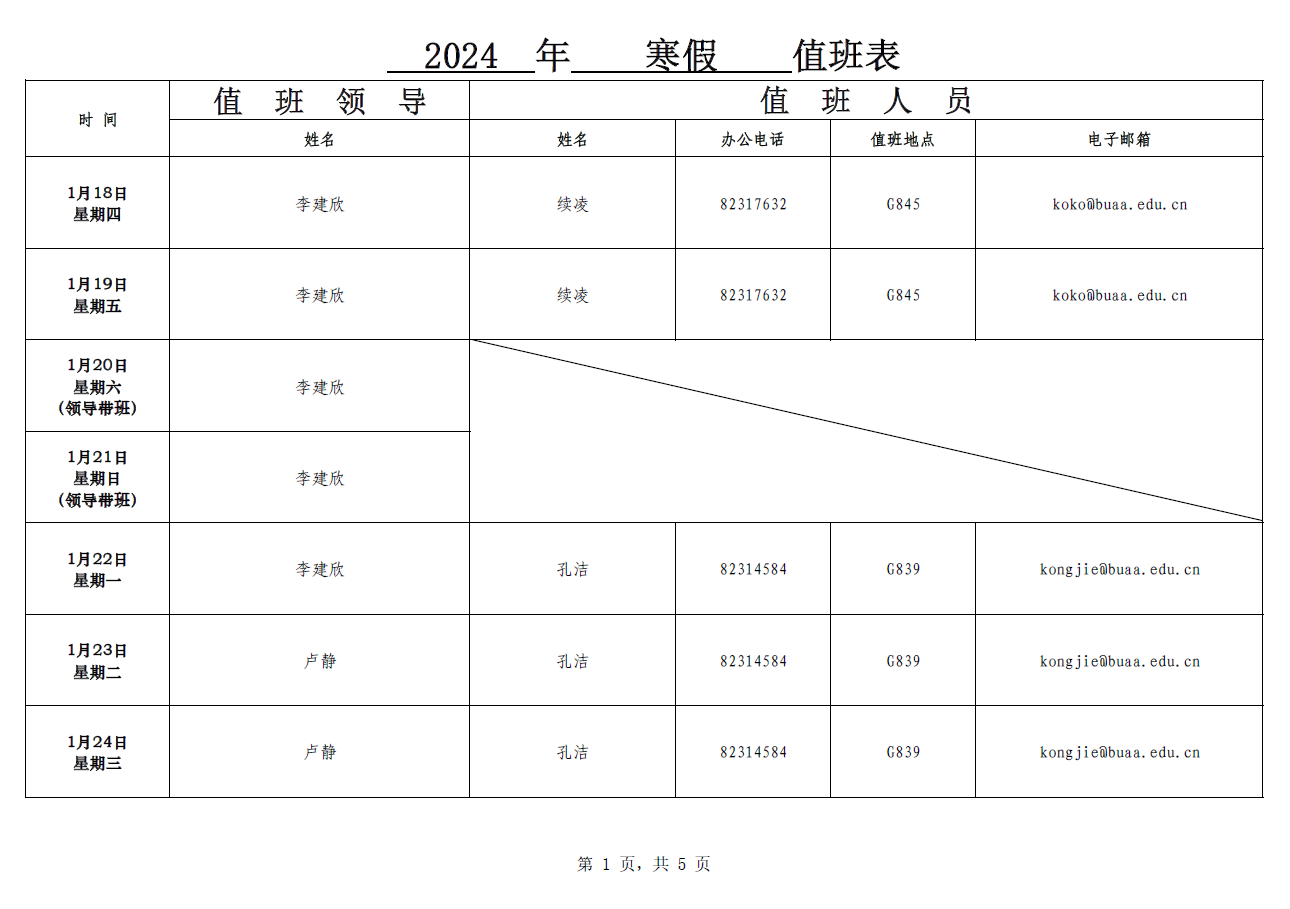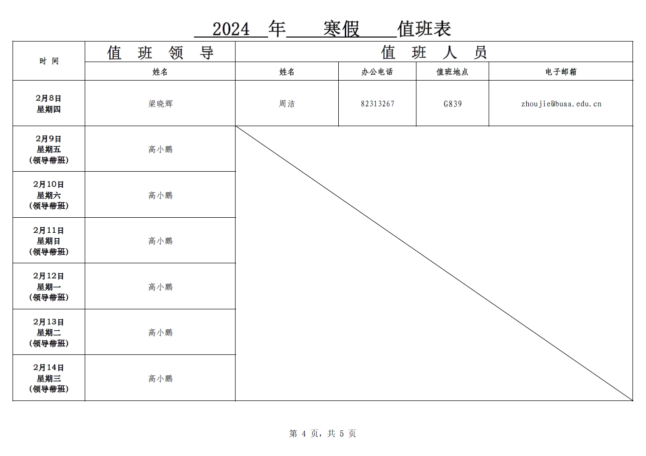 2024年寒假值班表